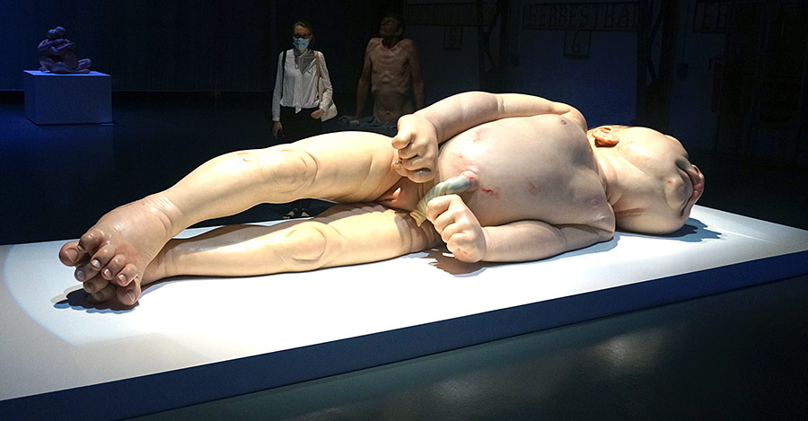 Så kommer man in i det rum där Ron Muecks jätteskulptur av en baby ligger. Det är såvittjagkanförstå en övermåttan naturenlig avbildning av ett nyfött barn. Man blir knockad av den bedövande (hyper)realismen. Men det är det där att barnet är typ minst 4 meter långt. Värdeperspektiv? Kör för det men visst tappar realismen en dimension när den ruckar på verkligheten.