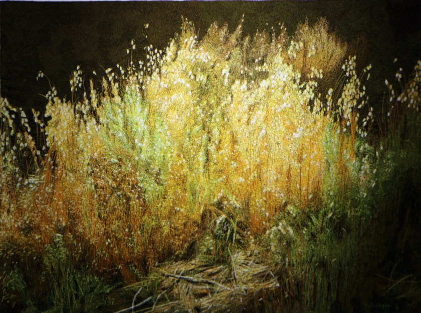 På den här utställningen finns några bilder som verkligen är fascinerande. Motiven är utsnitt ur ängar. Suveränt komponerade. Fint avvägda i färgen och med en intrikat och vacker ljusskildring av en klass man sällan ser. De här bilderna är läckert optiska, nästan tredimensionella. Man tänker på fotorealism utan att de varken är fotografiska eller realistiska. Möjligen är det magisk realism, ett sätt att inte bara visa verkligheten utan också berätta om någon ny sida av den. Göra något osett synligt vid sidan av det verklighetstrogna. Det är som en synvilla av något man har sett men aldrig på det här viset. Här finns en kärlek till naturen som är smittande.
