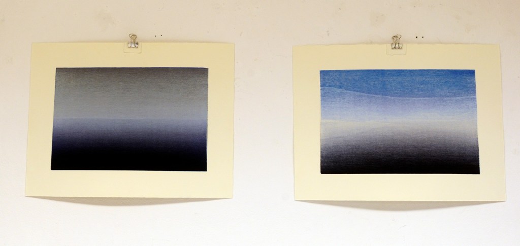 Det blir vad vi ofta kallar för monotypier, men som Jan Kromke benämner trätryck. Som även det är ett riktigt namn eftersom träets ådring är med vid skapandet av bilden.