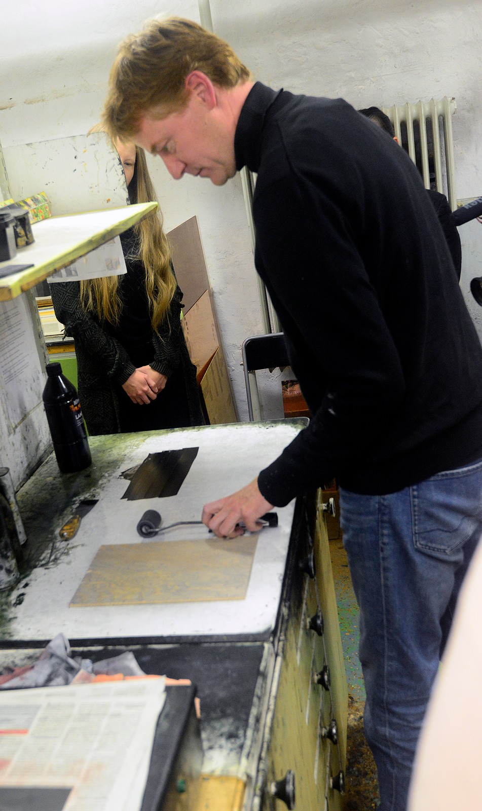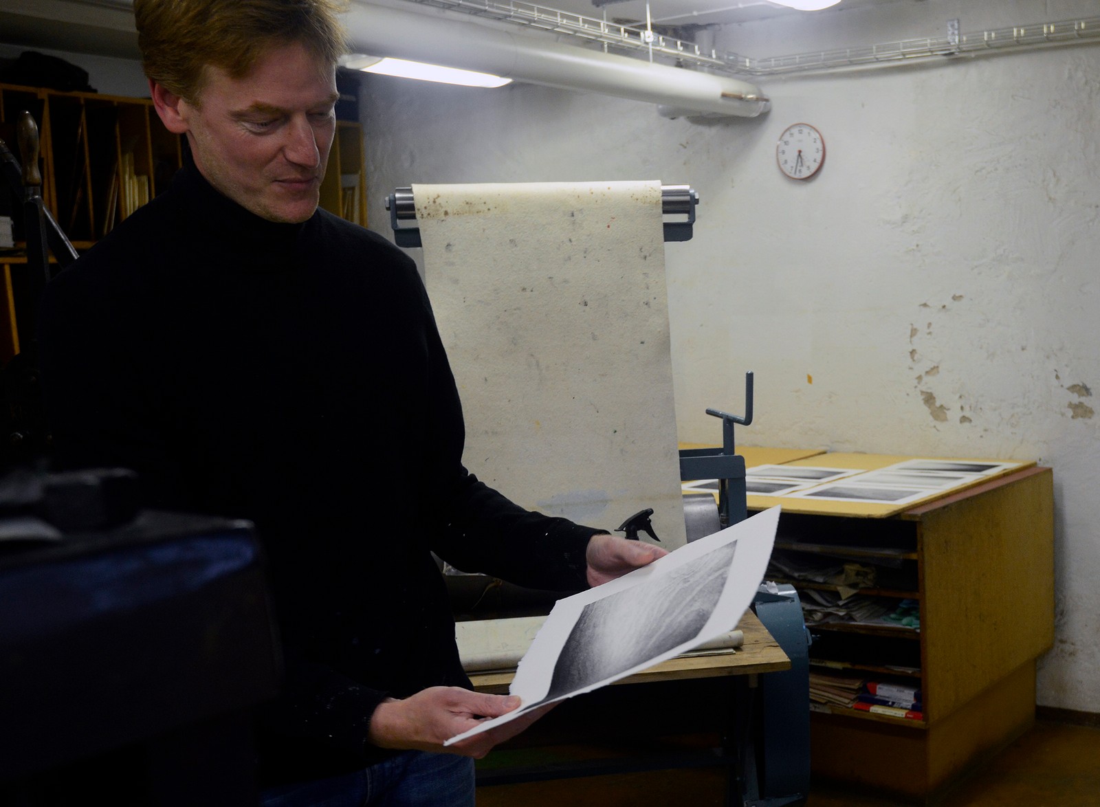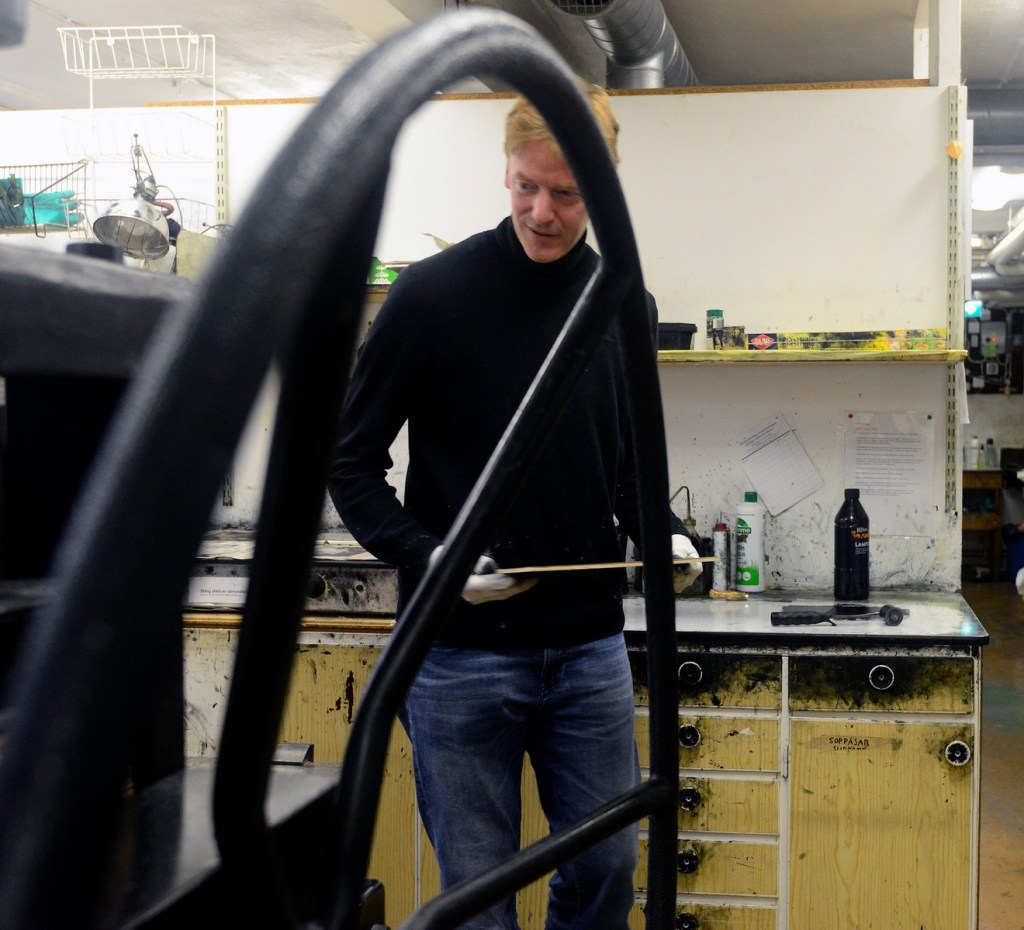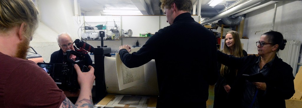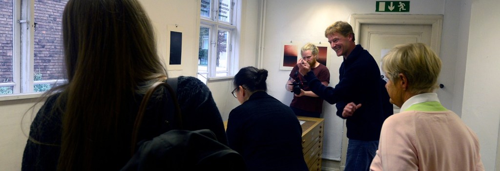 Sedan fortsatte visningen in i utställningsrummet där Jan Kromke under september har visat sina grafiska verk. Och sen det alla var mest nyfikna på. Hur gör han?