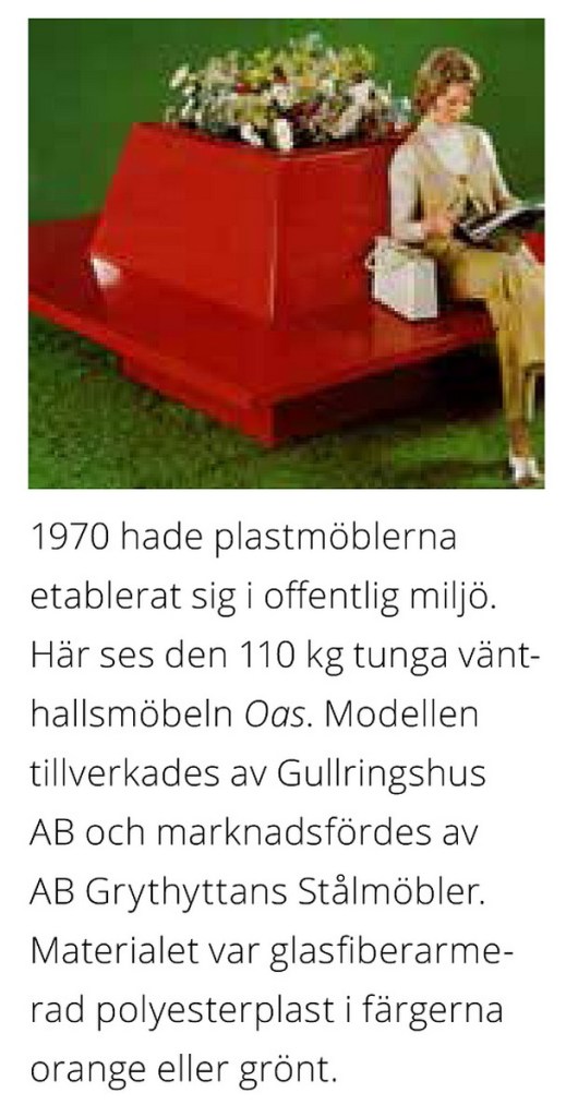 Ta frågan om hur modetrender i fråga om färg sprider sig. Och hur nya former och design uppstår ur materialval, ny teknik och utveckling både bland producenter och konsumenter. Här finns ett gediget underlagsmaterial. Du kan själv bilda dig en uppfattning. Det går bra att försjunka i bilderna på möblerna och utifrån dem närma sig materialet med sin egen blick och frågeställning. Men här finns också översiktstexter och vid bilderna av de olika möblerna finns förutom grundfakta ibland fabrikens eller formgivarens tankar. Men också utdrag ur recensioner och annan text från tiden när det begav sig.