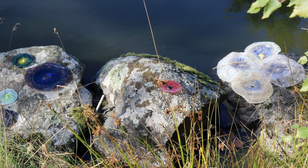 Vid damkanten låg också några vackert glimmande glasobjekt av Eva Ullberg. Jag fick associationer till maneter.