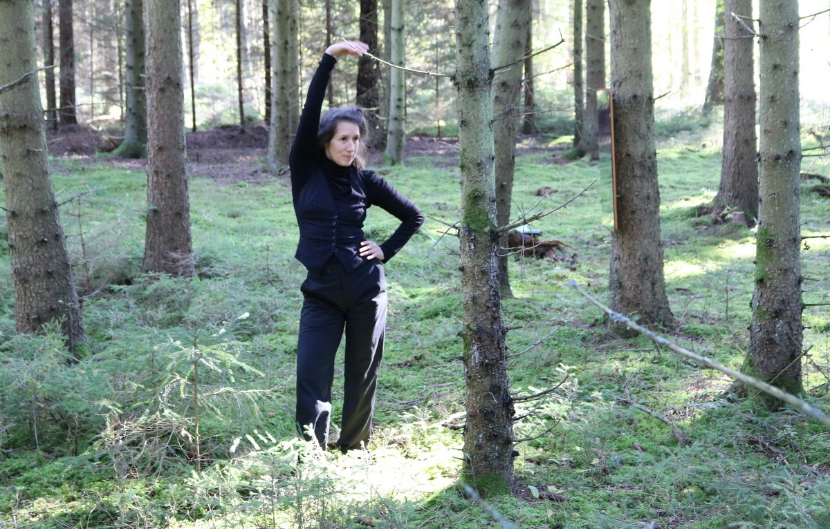 Sen fick vi promenera ut i skogen. Efter ett tag kom vi till en plats där det hängde skor och kläder i träden. Konstnären Berith Stennabb fanns på plats. Hon berättade om en dansbana som brunnit upp. Hon skickade runt en tom hink och vi fick låtsas släcka en eld. Sen berättade hon om dansbanan och dansade till en ensam fiolspelares musik. Konst är ett vitt begrepp.