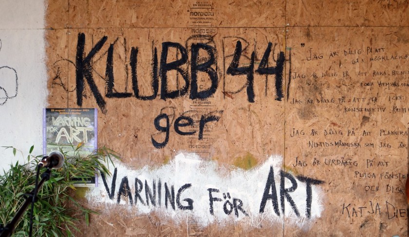 Varning för Art är ett konstprojekt därav Rum 44 bjudit in konstnärer att jobba och visa arbeten under tiden 29 augusti – 2 oktober. Det var öppet för besök lördagar och söndagar under den perioden.