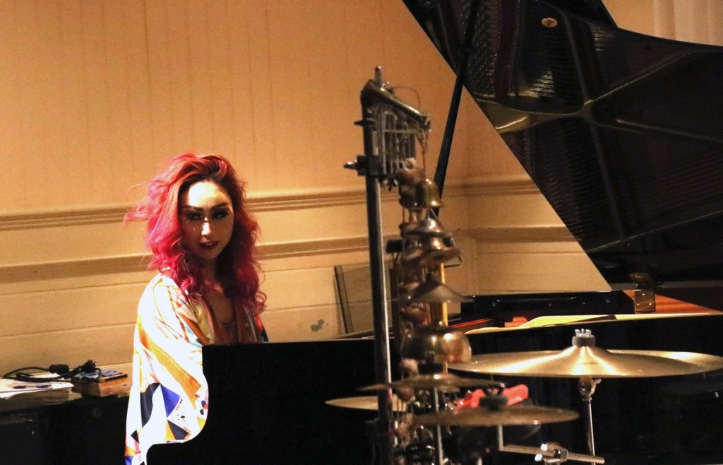 Och denna hennes egen beskrivning besannades på konserten. Det blev en stund fylld av dynamiska kontraster och kreativa infall. Jag tror att konst föds ur konst. Visst kunde man ana klassiska stycken, Keith Jarret och fragment som liknade annat man hört. Men den musik vi fick höra var hennes egen. Suggestiv och gäckande. Punkig emellanåt, men då som en skolad kammarpunk. Emellanåt gjorde hon jazziga vandringar över klaviaturen. Kontrasten och de häftiga och ibland överraskande tempoväxlingarna engagerade och fascinerade.