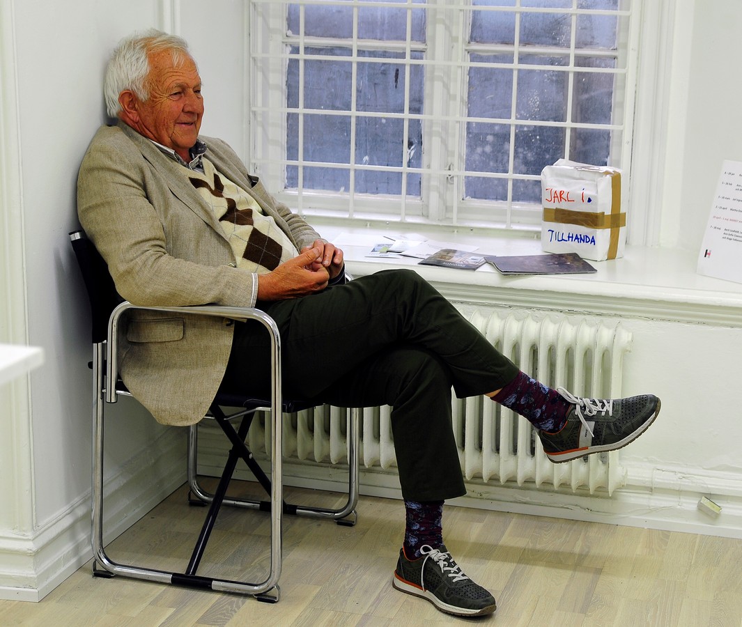 Så det börjar på en lördag. Där mötte jag inte bara konst av en välkänd konstnär, Jarl Ingvarsson, på väggarna. På kontoret i samtal med Pontus Hammarén satt en riktig göteborgslegendar: Fabian Carlsson.