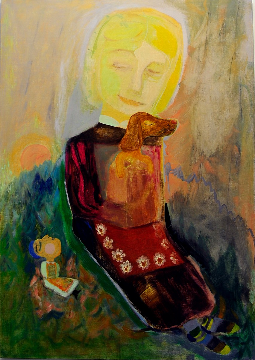 Därefter blev det Galleri Aveny med Magdalena Eriksson. Henne har jag sett flera gånger på Aveny i Göteborg och även en gång i Skövde. Hon har alltid något att berätta i sitt måleri, ofta utifrån en personlig orsak. Man kan säga att det går två vägar; att hon uppsöker sitt måleri och måleriet uppsöker henne. Hon är mycket aktiv både som målare och människa. Ibland kan det kanske bli lite mycket som skall med i en målning. Men aldrig tråkigt.