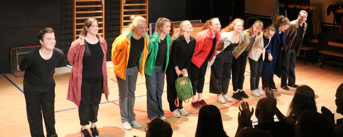 På scen: Kassandra Asker, Vera Dahl, Betty Fjällström, Milda Lindekrantz, Hjalmar Sonesson, Alice Stenberg, Philip Hammarstedt, Kajsa Linnea Holmqvist, Filippa Hugosson, Molly Wendelius, Sass Wolgers.