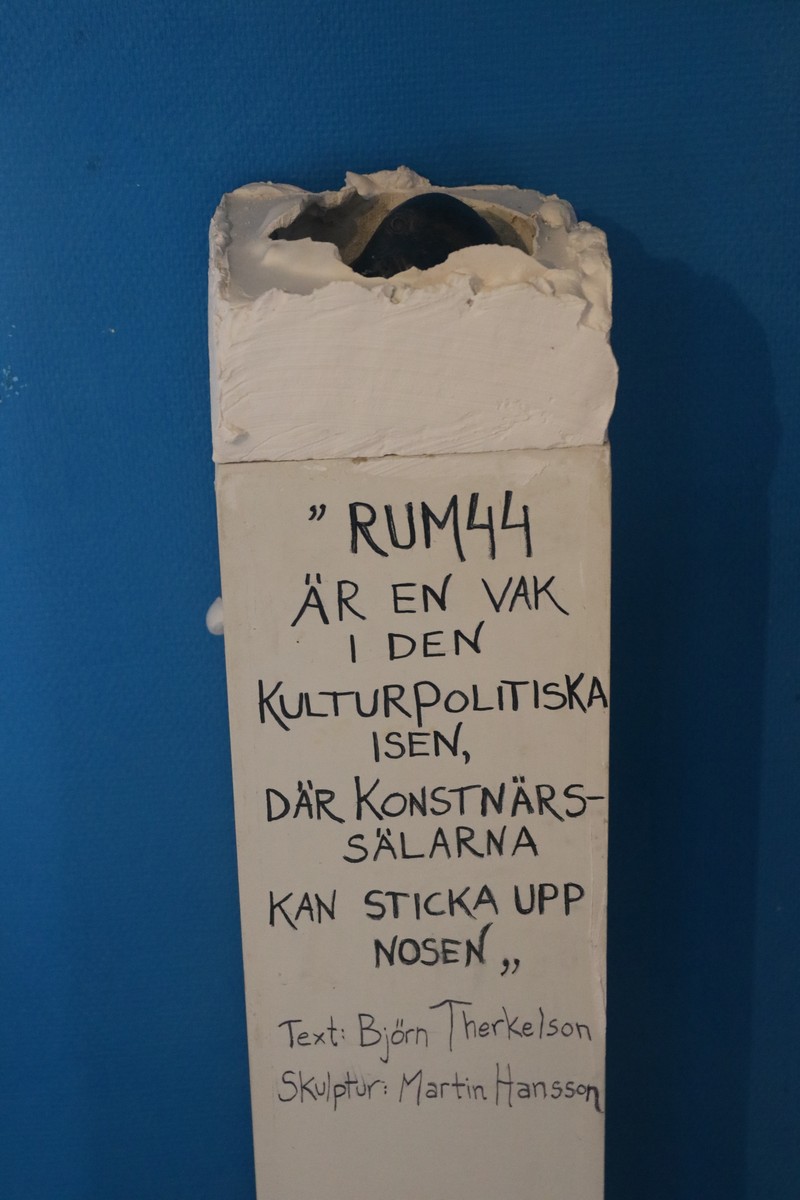 När nu Rum 44 fyller 10 år kan vi se tillbaka på konst och utställningar som är så egensinniga och disparata som konst ska ha rätt att vara. Det här inget ställe som konstklippare och spekulerare kommer till. För det är inte den sortens konst eller konstvärld det handlar om här. Hit kommer däremot folk som vill umgås med olika sorters konst på dess egna villkor och i den takt och med de förutsättningar man själv har. Tacksamt har jag mött och ibland omfamnat sådant jag inte visste att jag var tilltalad eller intresserad av.
