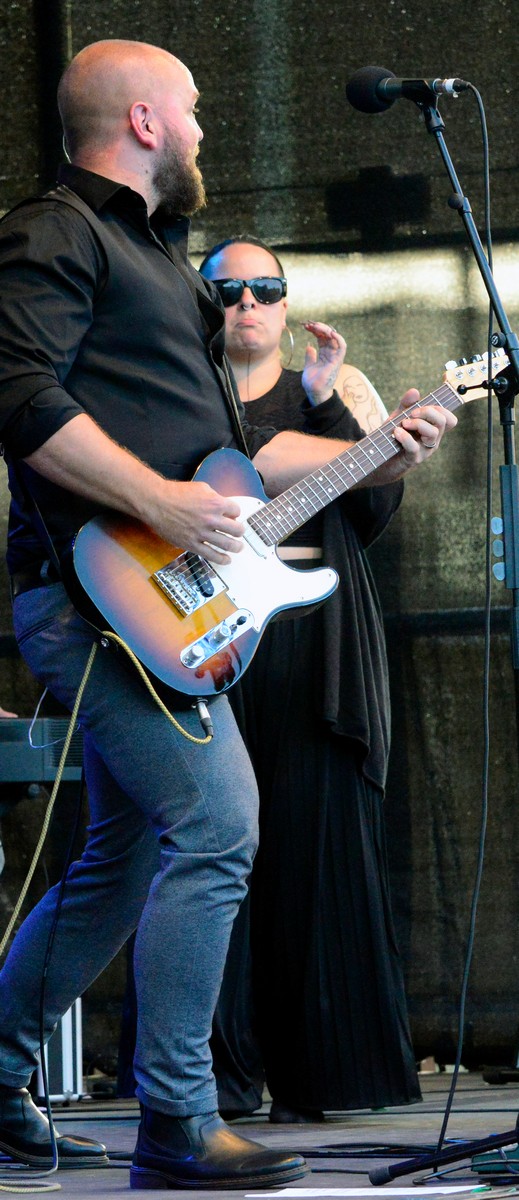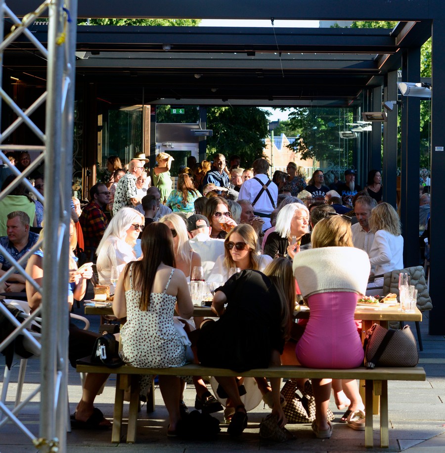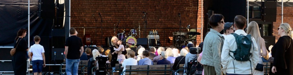 Allt började lite märkligt denna kväll. Jag kom till torget lagom till att förbandet skulle ha gått på. Möttes av en tom scen. Helt tom var den inte, den var full av instrument o annan teknik, men inga artister! På torget var nog alla sittplatser upptagna. Och på uteserveringen var det redan trångt.
