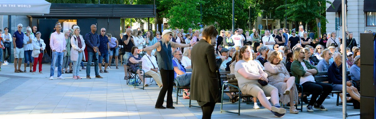 Nu blev det fullt på scenen. Och ett fullt ös som gladde publiken.