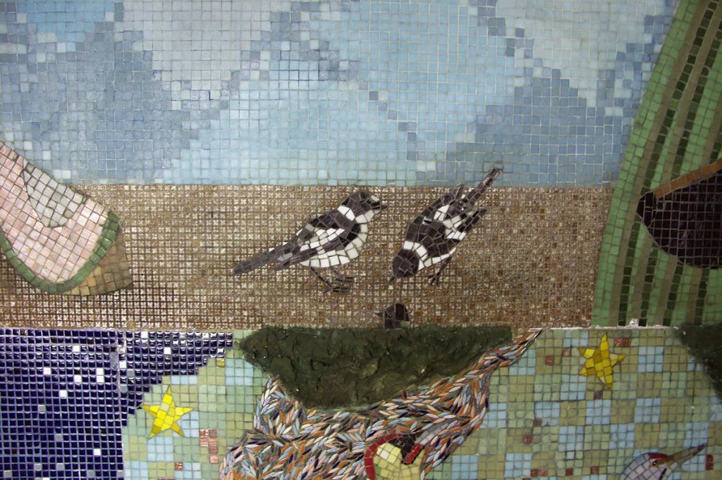 Min referens är konstnären Ernst Billgren vid sitt genombrott med rådjur och mosaiker. Tror att jag har sett att han i sin barndom såg de tidigare populära importerade maskinvävda gobelängerna med kronhjortar. Vet inte om det är sant, om inte, så borde det vara det. Det låg inom det då förbjudna, som att måla en älg i solnedgång.