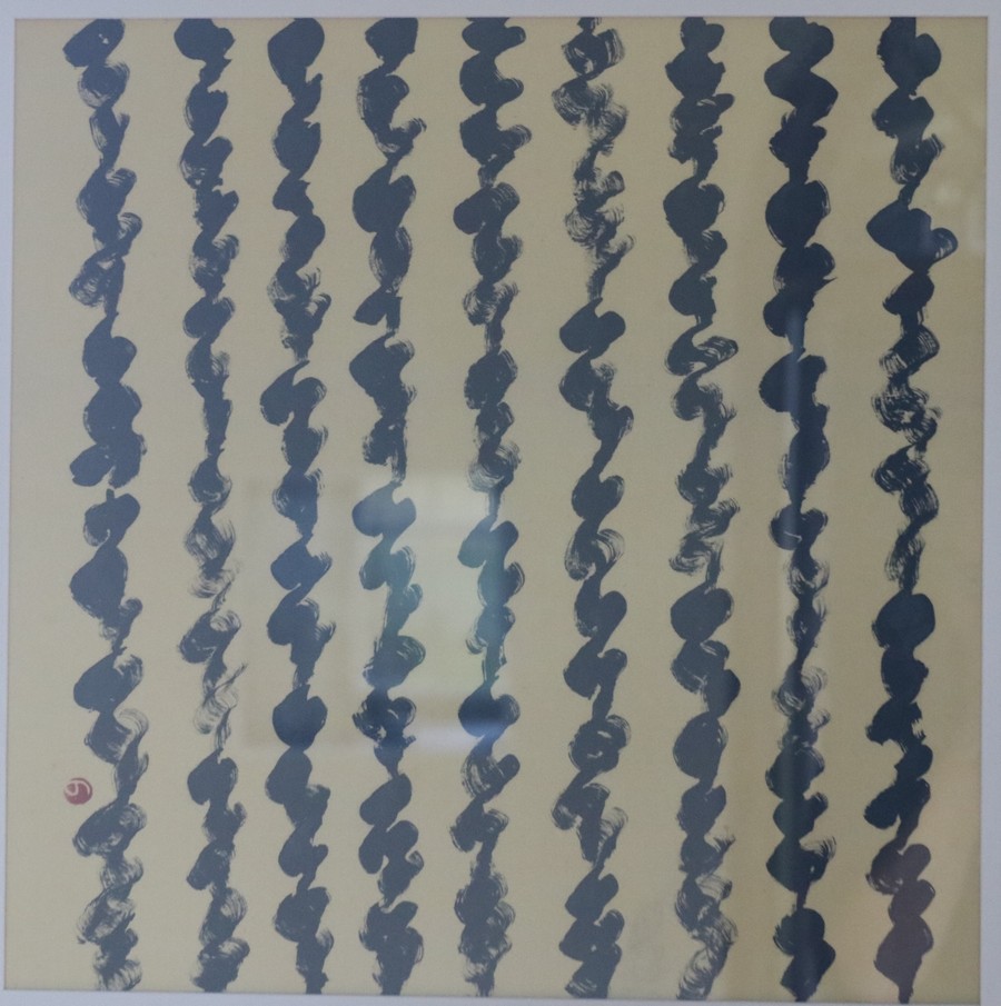 En annan favorit på utställningen är japanskan Nobuko Natsumes liksom kalligrafiska bild med ett mönster som liknar vridet garn. Det känns som det också bär ett metaforiskt budskap om kontakt och gemenskap.