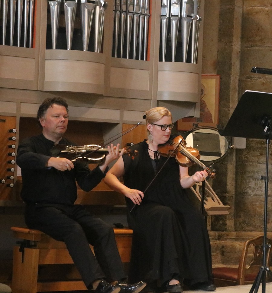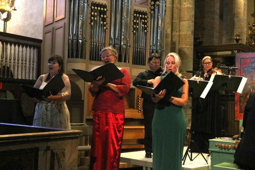 Vi fick höra starka kyrkliga verk. Man känner en koppling mellan text och musik, en samverkan på lika villkor där musiken fördjupar och förmerar orden och känslan. Musiken ger orden relief och skugga som fördjupar dem.
