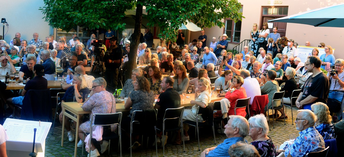 I onsdags var det sommarens näst sista gårdsfest. Och vilken fest. Vackert väder. Glädje på och framför scenen. Många på den utökade scenen (17+). Publikrekord, så många som fick plats och några till.