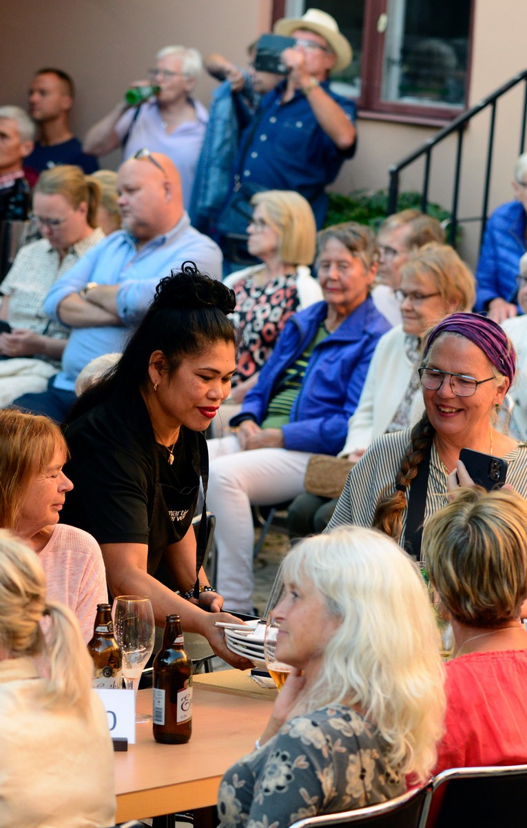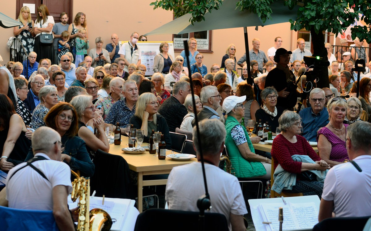 På onsdag är det sommarens sista gårdsfest. Missa inte den, det ser ut att kunna bli vackert och varmt. Kanske en viss risk för regnskurar. Men KAC brukar ha tur med vädret. Det börjar vid 18, med uppträdandet kl 19. Kom i tid om ni vill vara säker på en bordsplats. Här kan ni se mera om hur ni beställer mat o dryck.