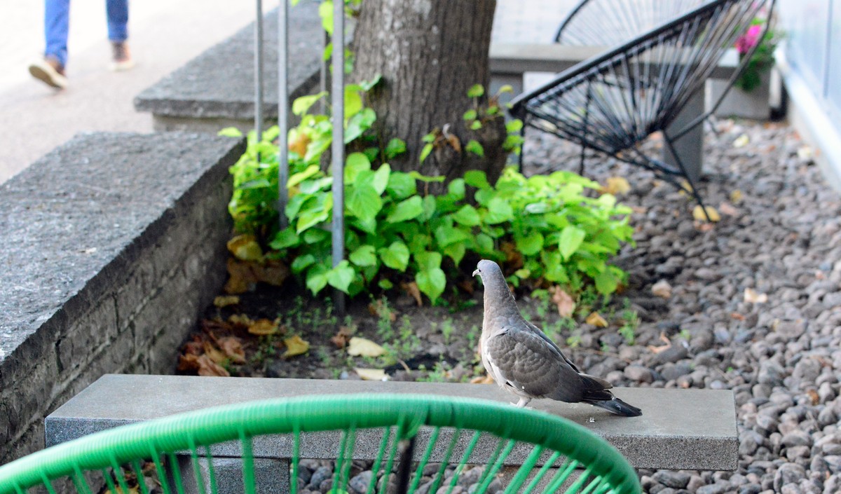 På behörigt avstånd från trängseln och med en lite lägre ljudbild satt det en vid gatan utanför hotellet, som såg ut att bara lyssna.