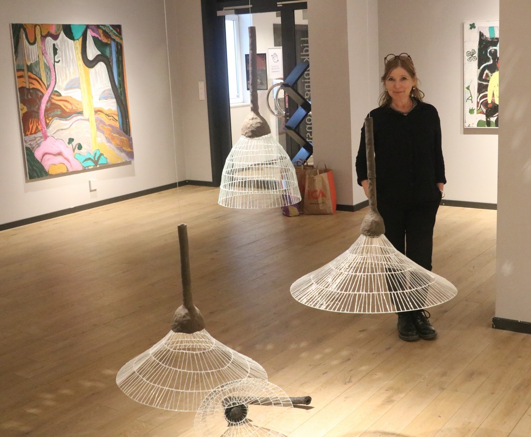Annika Jarring står för utställningens tredimensionella verk. Hon är förfaren såväl i glas som i keramik. Ibland blandar hon materialen till annorlunda hybrider.