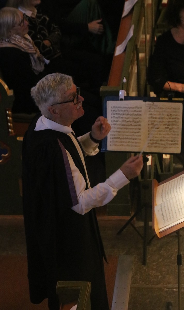 Konserten inleddes med två en nattvardsmotett för kör och orkester och en klarinettkonsert Mozart. Solist i det vackra stycket var klarinettisten Harriet Frid.