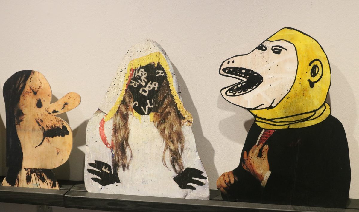 Samot Nosslin bor och verkar i Värsås. Hans bilder är kul. Han visar figursågade ansikten som liknar allt och intet. Men de har karaktärer som fångar ens intresse. De är korsningar mellan karikatyrer och karaktärisering. De porträtterar märkliga drag som bär belägenheter av ett slag jag bara sett här. Det är roliga och bildmässiga. Det är spännande att få möta dem. Man tycker sig känna igen vissa fast man aldrig sett dem. Det här är intressanta bilder som man överraskas av och de biter sig fast. Oklart varför. Men det här är inte budskapskonst eller metaforer. De är bilder fulla av intressanta infall och konstnärsidéer. Men de illustrerar inte något annat. De är bekantskaper man har glädje av just därför för att de är sig själva.