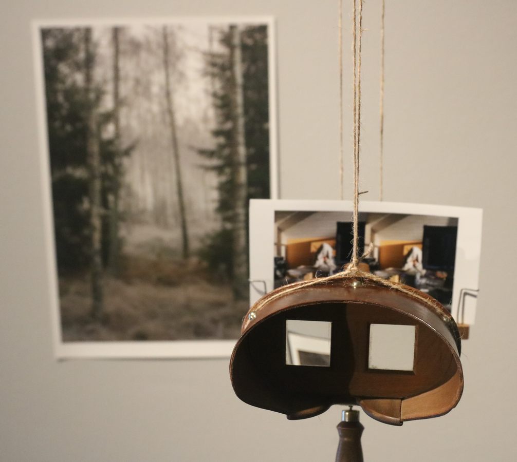 Carolina Jonsson bor och verkar i Hangelösa. Hon visar apparater som är föregångare till min barndoms View Finders. De är fint gjorda i trä. De hon hittat är gamla varianter, mycket vackra i sig. Man tittar in i en sådan apparat och ser ett foto helt tredimensionellt. Vi får på så sätt se fina bilder av hennes barn. Till det hör vackra fotografier av skogspartier, utskrivna bilder på väggen bakom. ”Det enskilda barnet och landskapet började för mig i samklang beskriva tidens rörelse.” står det i reklammaterialet. Så är det nog för konstnären. Men för mig som betraktare är det svårt att nå fram till en sådan hisnande upplevelse.