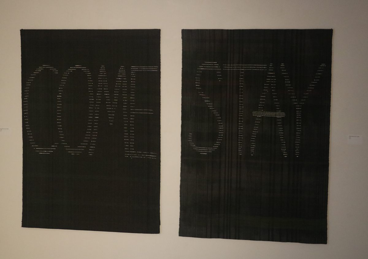 Katja Beckman Ojala är välutbildad handväverska, numera bosatt i Skaratrakten. Han har gedigna studier både i Sverige och utomlands. Hon arbetar med gobelängteknik. Några av hennes verk liksom bryter vävplanet och blir oregelbundet tredimensionella. De är ofta enfärgade (kallas monokroma i contemporarysammanhang). De flesta är svarta, men en drar åt det kleinblå. Strukturerna är viktiga i verken. Rya är en återkommande teknik. Hängande tråda bildar en textil ridå som både döljer och släpper igenom. Bakom trådhänget finns bilder som man som betraktare får jobba litet med för att få syn på. Man kommer åt deras hemligheter, t ex en katt eller ett engelskt ord ”när man verkligen tittar” som det står i reklammaterialet. Några svarta sådana verk visar sig vid betraktande i rätt vinkel tillsammans innehålla budskapet Come Stay.