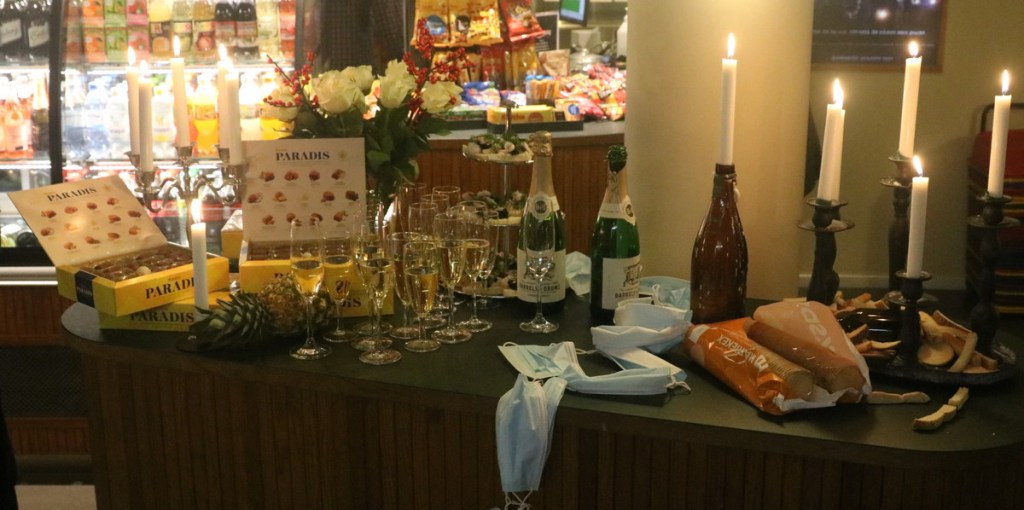 Det var ett genomarbetat och väl genomtänkt arrangemang. Filmen handlar bland mycket annat om klassklyftor och avgrundsdjupa skillnader i levnadsförhållanden och levnadsstandard. En drastisk bild av det gavs redan i foajén där man dukat upp ett bord med välkomsträtter som visade på skillnaderna. Bordet var tydligt avgränsat i två delar med munskydd. På ena sidan, den för de fattiga, bjöds på torra brödkanter och kanske ett kex. På de bättre bemedlades sida fanns bubbel, snittar med räkor och kaviar och choklad med det passande namnet Paradis.