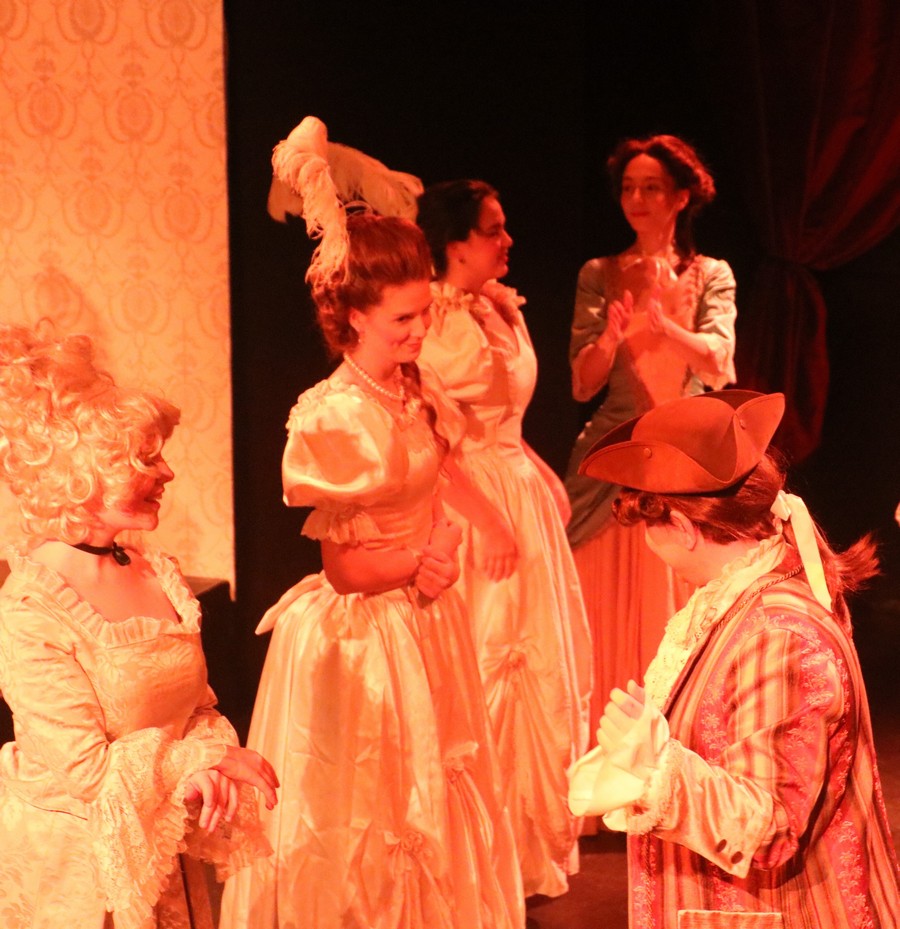 Pjäsen Den Röda Nejlikan är ett kostymdrama. Och man har gjort ett gediget jobb med kostymerna som är så viktiga här. Det är ett stort gäng som gjort dräkter som gör tidsresan trovärdig och får oss att lämna vår tid en stund. Och scenografin gestaltar med enkla men effektiva medel kontrasten mellan aristokrati och underklass.