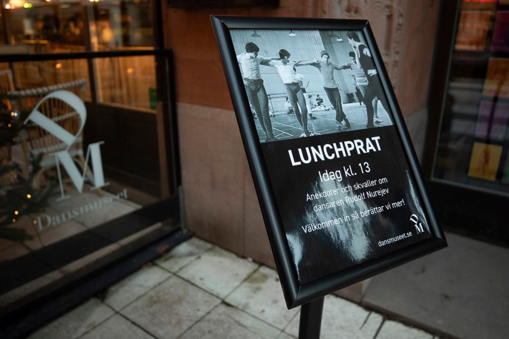Två ytterligare ”Lunchprat” med Klas Rickman om Rudolf Nurejev återstår den kommande och följande tisdag innan utställningen med bilder, filmer och kostymer far vidare, först till Slovenien och sedan till Frankrike.