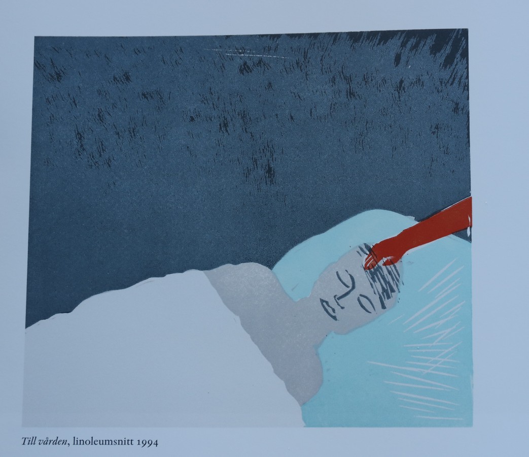 Det är inte illusion han är ute efter. Tekniken får synas och vara med. Man ser att träsnitten är träsnitt, stockens struktur och mönster blir en självklar del av uttrycket. Och så ska det vara. Det är det är ett slags verfremdungseffekt i Brechts anda. Man är inne i bildens värld och så ser man den samtidigt utifrån. Det uppstår en livgivande dialektik mellan motiv och teknik. För mig är det uppenbart att han vill att man inte ska ta emot hans bilder passivt. Det betyder att även de vackra slättlandskapen berättar något mer än vad ögat ser. Dels om hur natur och kultur interagerar. Att också det poetiska kan ha en politisk underton i hans bilder. Millroth kallar det med ett klargörande begrepp för ”lyrisk millitans”.