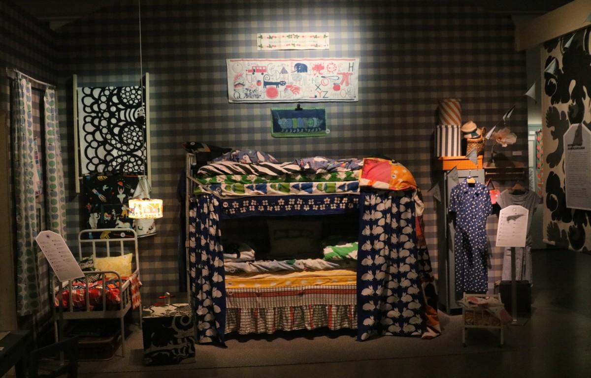 I boken diskuteras hur folkhemmets nya bostäder kom att ställa nya krav på hemtextilierna. Fönstren fick t ex ny utformning och placering. Den tunga empiredraperingen fungerade inte längre funktionellt och framför allt inte estetiskt. Men det var i de nya köken de tryckta bomullstygerna slog igenom först. Nu kom också olika plastade tyger som lämpade sig väl som vaxdukar i glada mönster. Jag minns en del av dem med nostalgisk glädje. En (textil) revolution skedde även i sängkamrarna. Broderade bårder på lakanen ersattes av tryckta. Och på de nya påslakanen som dolde filten blev plats för mönster, en ny bäddkultur. Även barnen fick sin nya bildvärld.