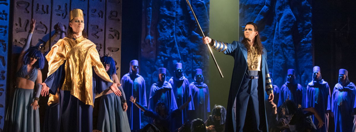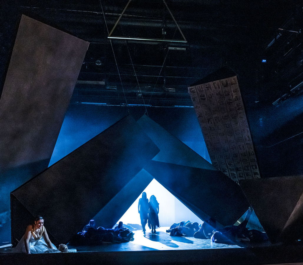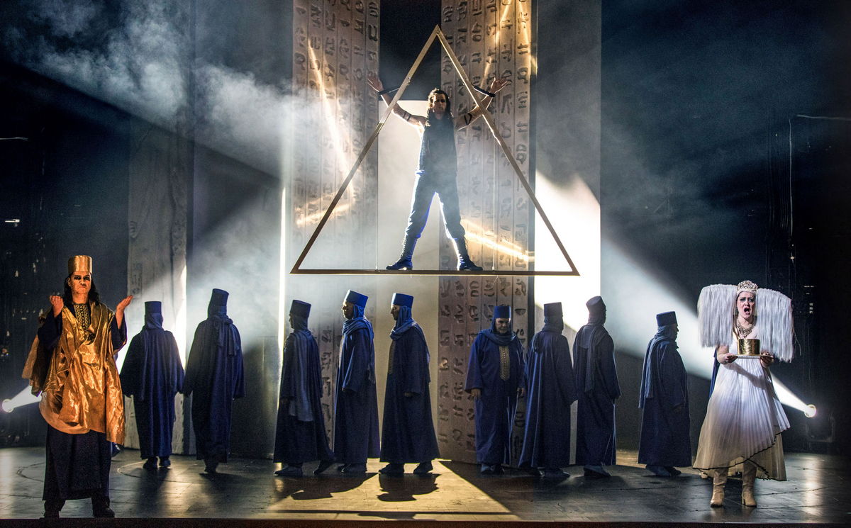 Scenografin med stora block med låtsashieroglyfer och egyptiska reliefer fungerar fint och varieras genom vridningar och intrikat stämningsskapande ljussättning.