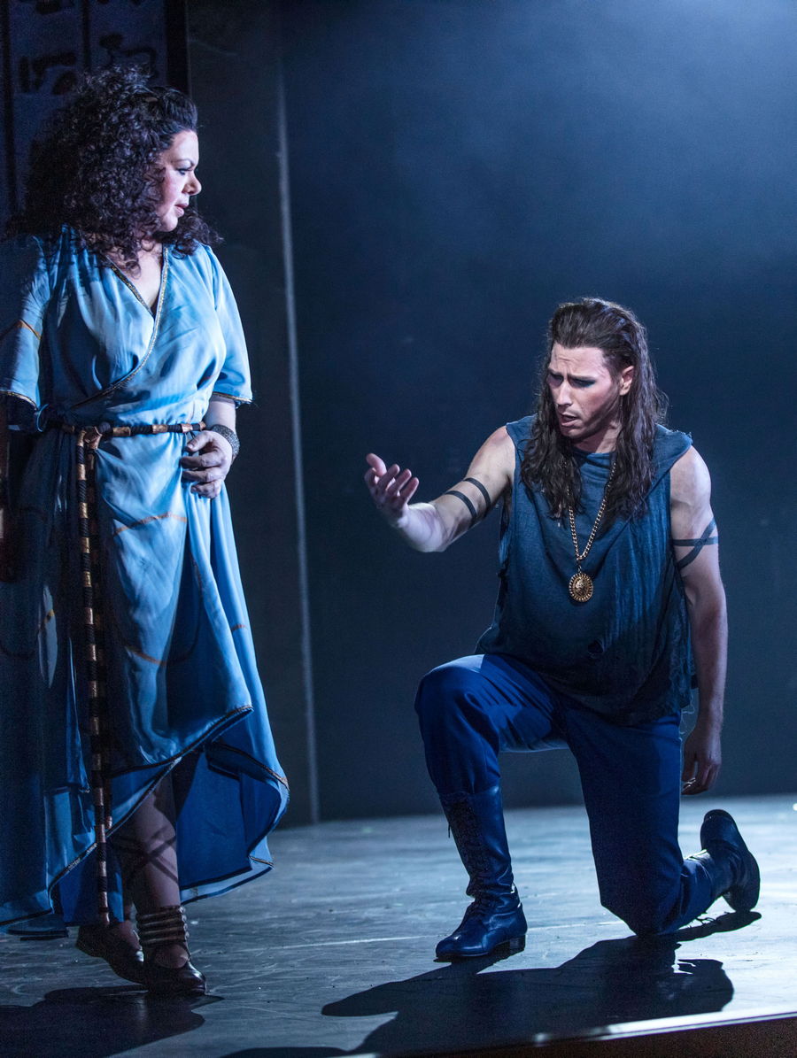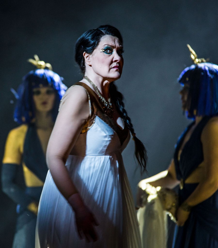 Det är en tät och väl sammanhållen uppsättning som tar fram och förstärker dramat. Scenerna med kärleksparet, Aida (AnnLouice Lögdlund) och Radames (Ole Aleksander Bang) är fulla av passion och kval som laddas av musiken och sångarna. Alltid drabbande och stundtals gripande. Dramatiken förstärks av den svartsjuka och maktfullkomliga kungadottern Amneris (Martina Dike). Hennes neurotiska hetsätande av gräddbakelser känns som litet overkill i karaktäriseringen, men annars är hon hård och kall som brons på natten.