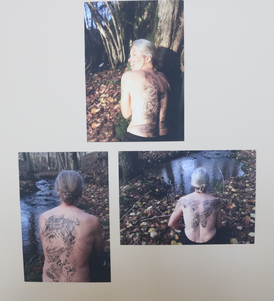 Åsa Herrgård är en rutinerad skulptör. Hon visar här sina naturintryck i olika tekniker. I verken här har hon intresserat sig för de spår insekter lämnat innanför barken på stora träd. Där finns en fascinerande mönstervärld, okänd och osedd för de flesta av oss. Det ger intressanta och originella bilder. Det mest anslående resultatet här är foton där vi får se resultatet av att hon med en avtrycksteknik fört över trädmönstren till sin egen rygg. Man ser dem som tatueringar. De här tecknen har en air av rit och magi. Hon överför dem andra gånger till bilder på ett sätt som för tankarna till Max Ernst frottageteknik. Natur, konst och konstnär smälter samman.