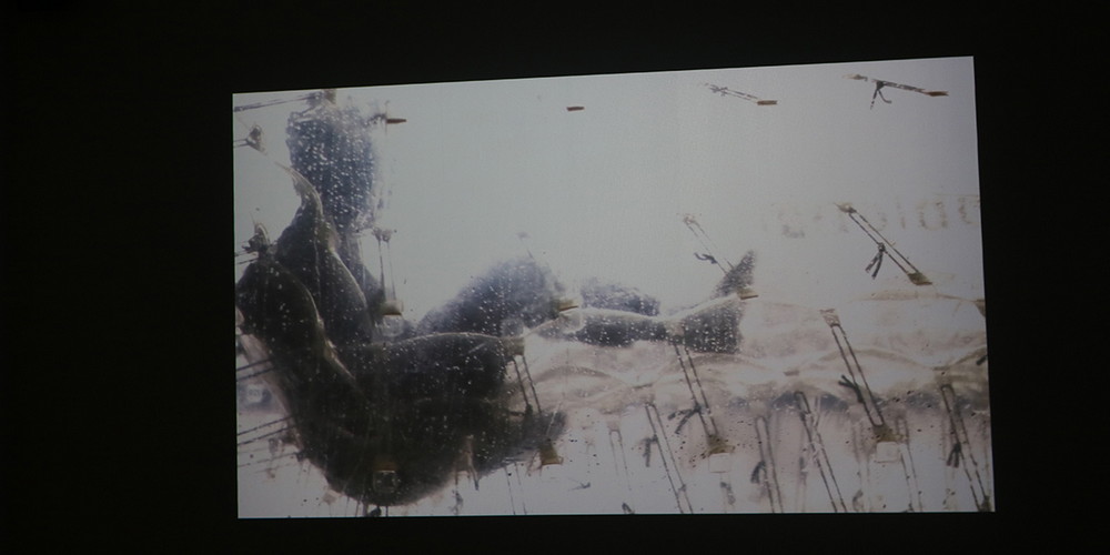 Det är ett mångtydigt bildflöde, ett äventyr för ögat, med bilder av ett slag jag vare sig sett eller kunnat föreställa mig. Ljus och reflexer, hisnande bildvinklar. Vem kan säga vad som är abstrakt eller föreställande. Trots att ögat är ständigt upptaget av bildernas märkliga blandning av skönhet som både skapas och utmanas av de vitala rörelserna. förs tillägnelsen mot både intellektet och oroar i känslodunklet. Stillbilder ur verket bär an annan, men även de en oomtvistligt fängslande skönhet. Jag blev helt fascinerad av det här verket och såg videoloopen gång på gång.