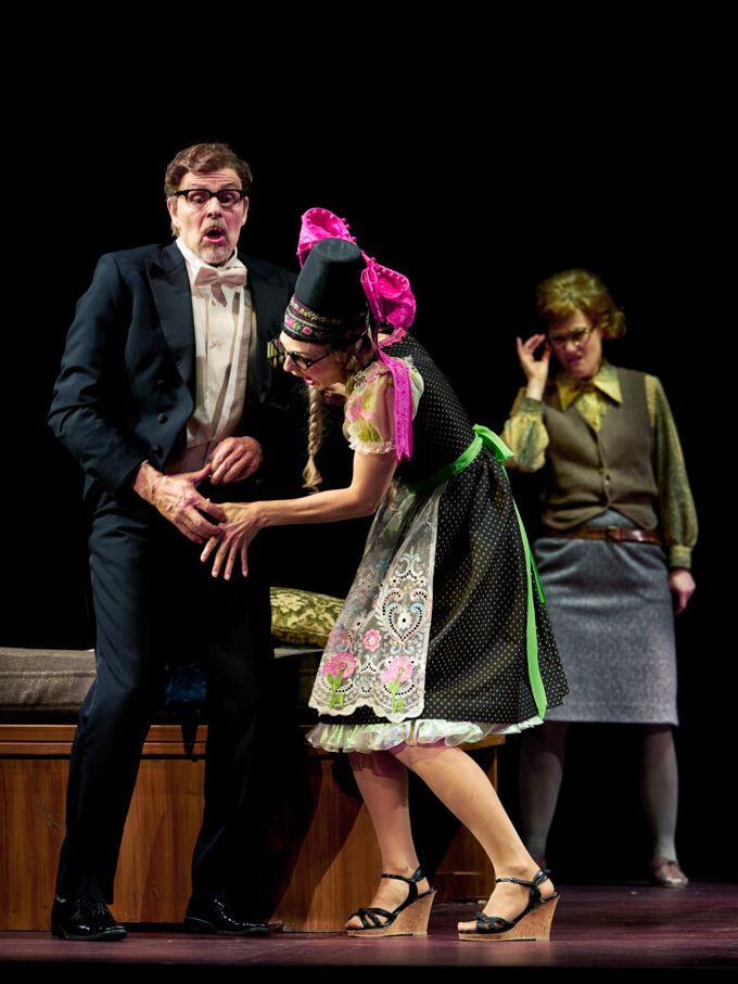 Huvudpersonerna heter Morsaus, charmat spelad av Göteborgsoperans mångårige basklippa Anders Lorentzson, Han gör vid 68 år (sic!) sin sista huvudroll före sin pensionering. Och han sätter punkt för en lång och framgångsrik karriär med ett utropstecken! Ja flera!! Hans rollgestaltning och framför allt sång är heltigenom övertygande och imponerande och en viktig orsak till att föreställningen fungerar så rasande bra.