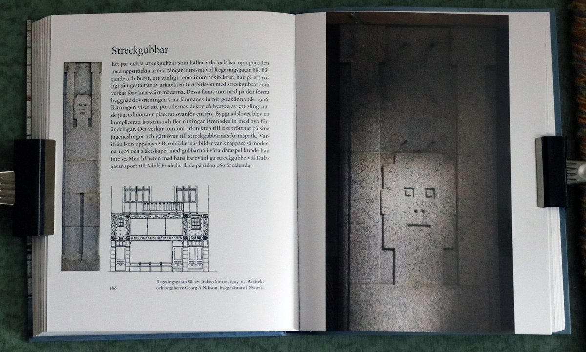 Så där kan man fortsätta. För på varje uppslag i den här boken finns intressant offentlig konst integrerad med sina byggnader. Stockholm fick en air av världen när nittonhundratalet och med den jugenden gjorde sitt intåg. Som det står i boken ”En doft av Wien, Paris och Berlin spreds i den svenska huvudstaden.”