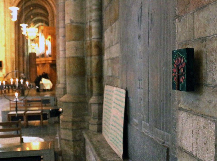 Det är en av inspirationskällorna för konstnären Tommy Westbergs utställning i Skara domkyrka. Han har gjort en egen variant på den så kallade korsvägen. På olika platser längs väggarna i domkyrkans långhus har han installerat konstverk han gjort som presenteras tillsammans med stora handskrivna ark med dikter och andra texter som anknyter till temat. Det är gjort på ett fint sätt så att man kan stanna upp, sätta sig när man behöver det, och fundera över texterna och hans bilder. Som oftast med Tommy Westbergs verk är de gjorda i ett lågmält tilltal. Det är verk som ger upphov till många tankar och eftertankar.