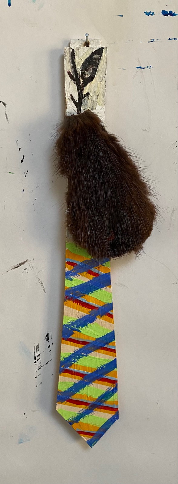 Pälspäronslips, blandteknik, 50 x 13 cm, 2023