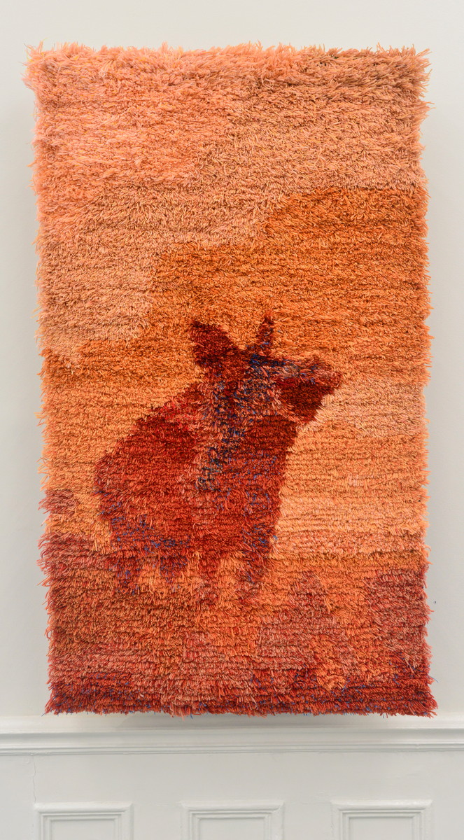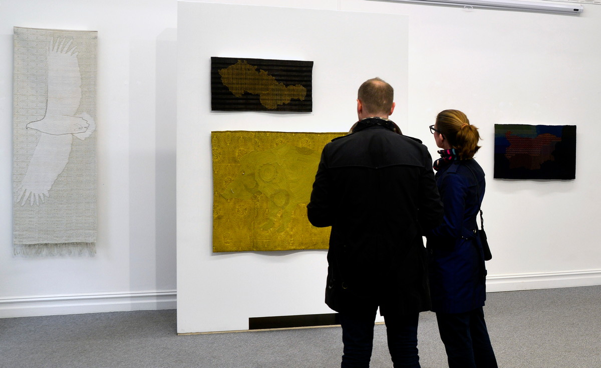 Tabea Dürr visar textila verk; mateialet och arbetsmetoden är viktiga delar i verken.