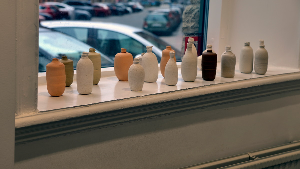 Samlingen kallar hon ”Mitt museum” och har under en längre tid lekt med den på lite olika sätt. Leran är bränd, obränd, glaserad och oglaserad stengods.