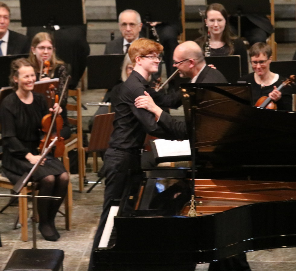 Det låter sig lättare sägas än göras. Men Vilhelm Moqvist tog sig an utmaningen och tog full kontroll över verket och levererade en tolkning som var både imponerande och musikaliskt övertygade. Chopins musik är full av dynamik och kontraster. Moqvists spel utstrålade gedigen musikalitet och teknisk briljans i en benådad förening. Den andra satsen, den som kallas Romanze, gjorde särskilt starkt intryck på mig med sitt lugn och gripande melankoli. Andra delar kräver den tekniska bravur som Vilhelm Moqvist besitter och förvaltar på rätt sätt. Men han låter inte virtuositeten bli uppvisning utan ett medel för musikalisk fördjupning. Fantastiskt att vi kan få se en konsert av den här kvaliteten av Vilhelm Moqvist ”på hemmaplan”. I framtiden kommer de stora konsertarenorna att vara hans hemmaplaner.