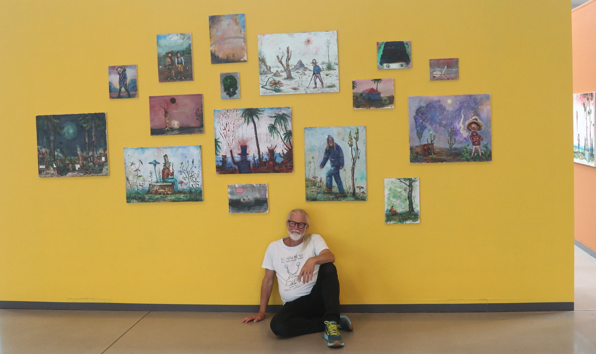 Han skapar minidramor om stora frågor. Mitt emellan realism och serietidningar vinglar hans vilsna men inte sällan diaboliska figurer. Har han hittat nåt användbart i konsthistorien så är det pang på. Det är inte bara Caspar David Friedrichs figurer som behöver titta ut över en intig evighet.