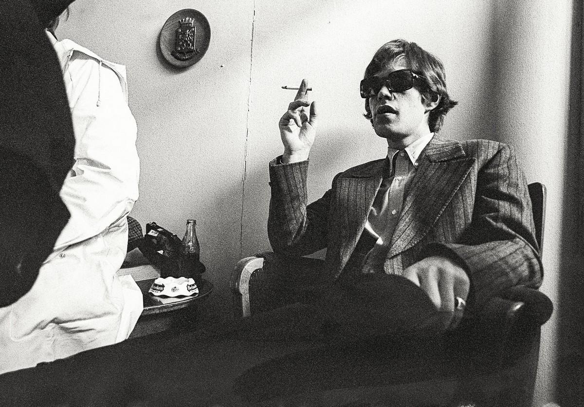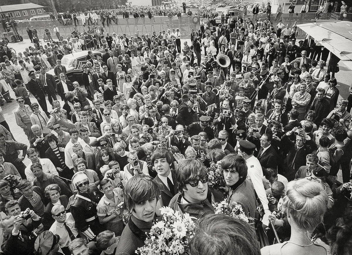 Beatles ankomst till Arlanda 1964, alla fyra vände sig mot Larsåke Thuressons kamera på hans högljudda kommando. Hela pressuppbådet och ankomstkommittén i bakgrunden (t.V.) — Mick Jagger i logen i Kungliga tennishallen, 1966. (t.h.)