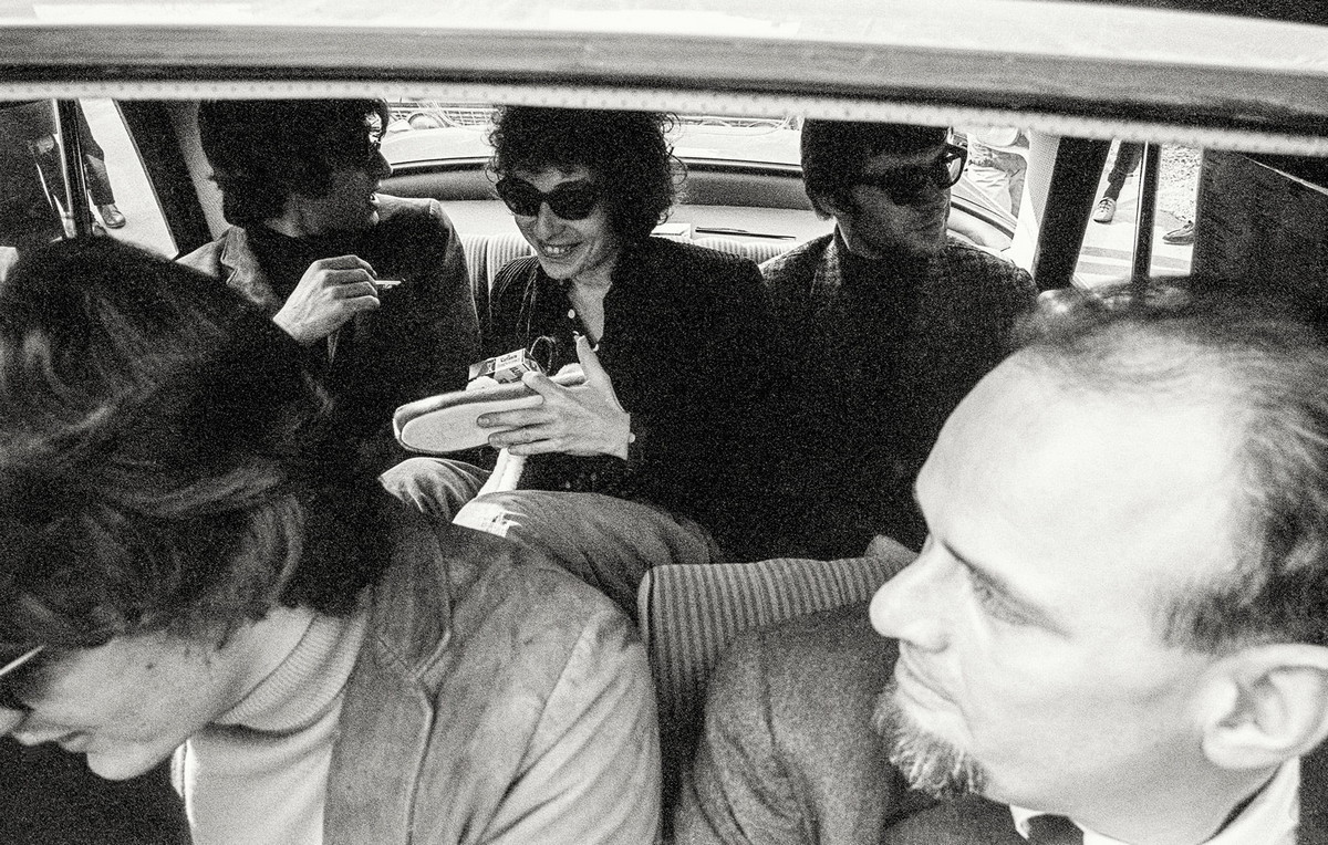 Cher shoppar på NK 1966 (t.v.) — Lars Forssell och Cornelis Vreeswijk på Den gyldene freden 1972 (ö.t.h.) — Bob Dylan med the Band, Simon Brehm i framsätet och Lasse Berghagen är chaufför (ej med på bilden) 1966 (n.t.h.)