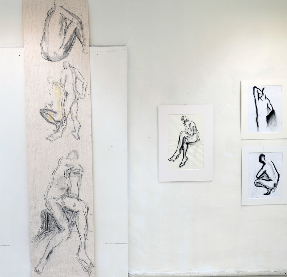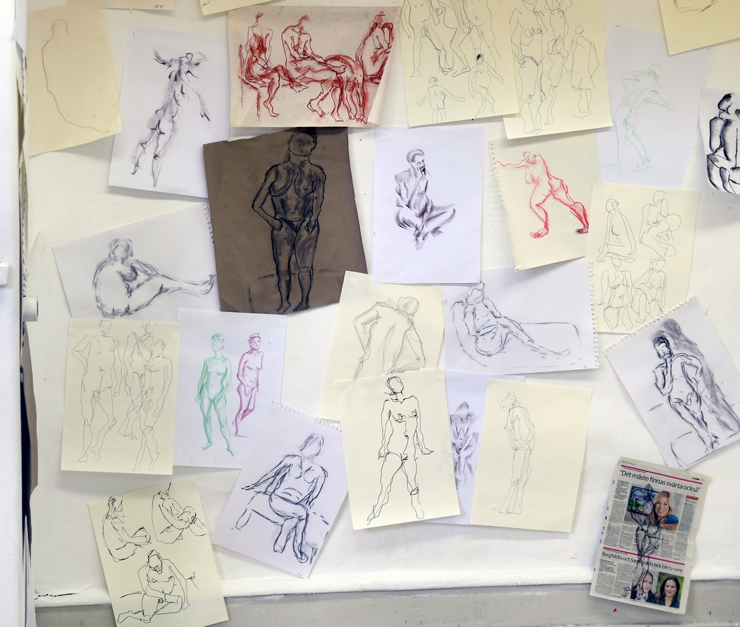 I det stora huset är det en utställning ”Kropp är konst” med bara kroki. Inte så bara eftersom krokiteckning är en klassisk grundpelare inom bildkonsten. En gång i tiden ingick det även i utbildningen av arkitekter eftersom man ansåg att de behövde kunskaper om den mänskliga kroppen i relation till rummet.