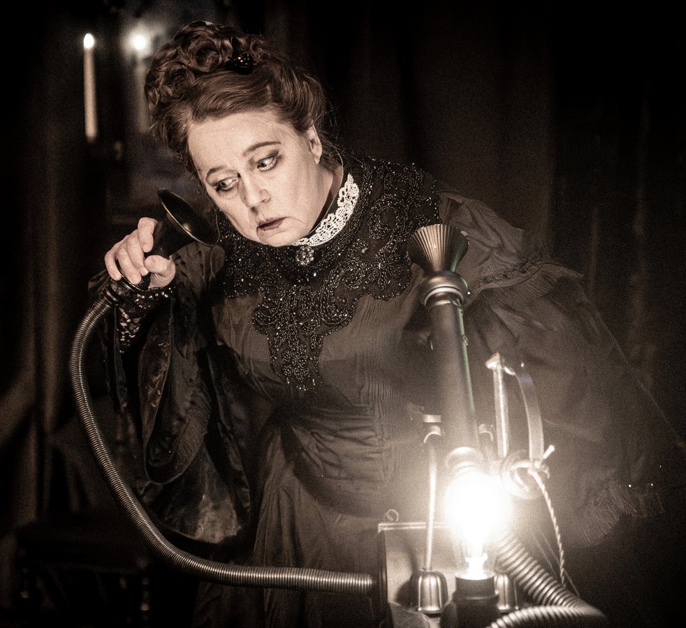 Scenografin av Bengt Gomér med det mattmörka rummet med sina seansattiraljer gav rätt stämning Den och dräkterna och regiarrangemanget gav en ryckig stumfilmskänsla som klädde och lyfte innehållet.
