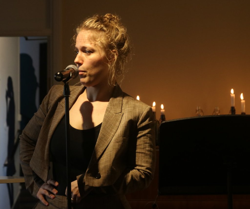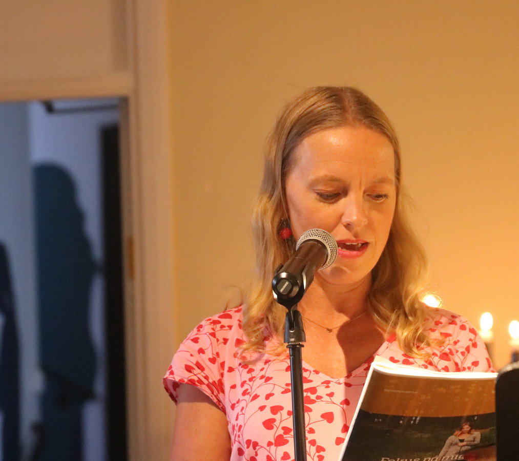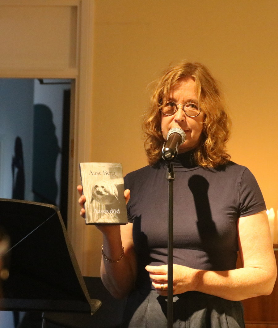 Etablerade och starka poeten Aase Berg gav oss en sneakpeek när hon läste ur sin högaktuella diktsamling Aases död som kommer ut alldeles i dagarna. ”En påbörjad förvandling till apatisk djuphavsblobb byter riktning på grund av kriget, den utmattade modersinstinkten och en rovdjursaggressivitet som vägrar slockna. Det jagande jaget återvänder i livsavgörande dödskamp trots att minnet är grumligt och hjärnan är tom.” Det framgår av pressmaterialet att det är komplexa texter. Det var mycket att ta in. Hon läste en rad korta dikter av ett slag som var svårt för mig att ta till mig så här första gången jag hörde dem. Men jag blev nyfiken och blev sugen att läsa boken. För den här typen av dikter kräver sin tid och eftertanke.