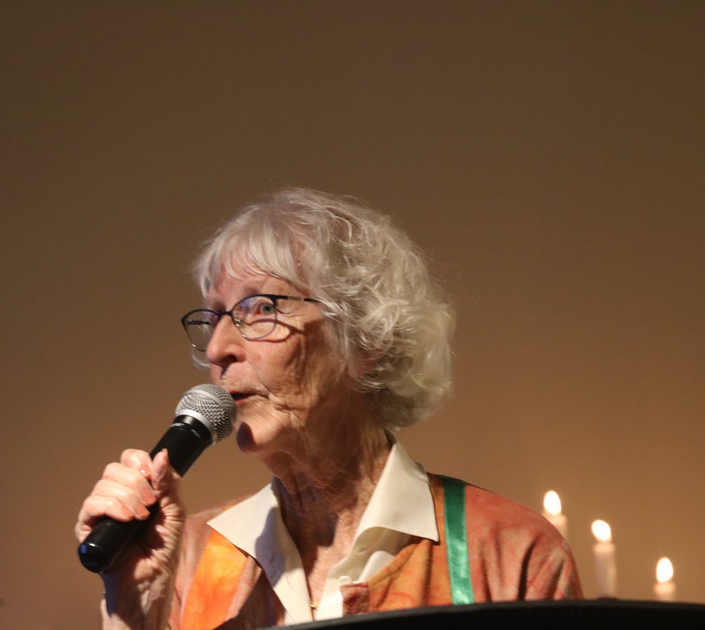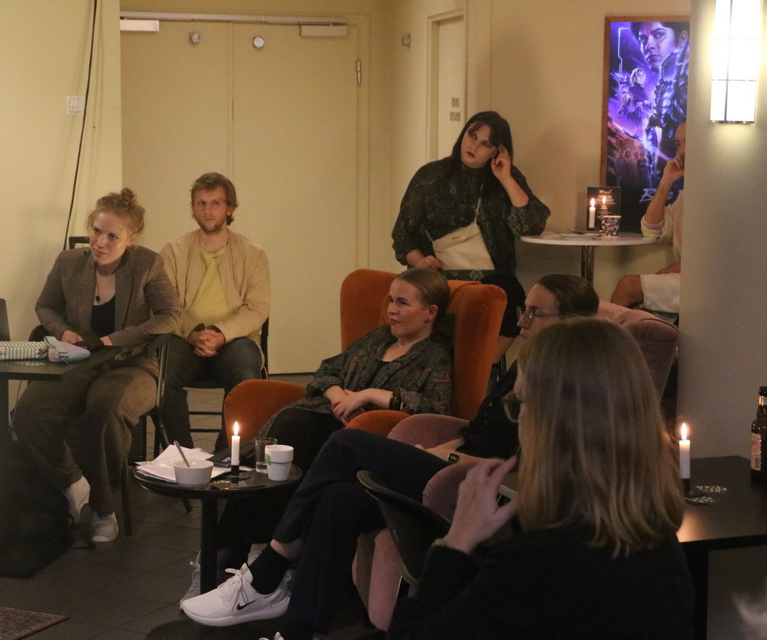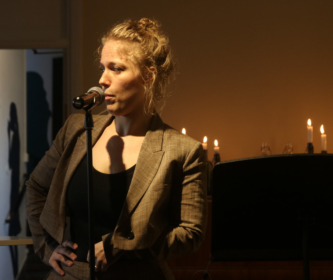 Vi skulle ha varit i Ordens Trädgård på Folkets Hus innergård. Men det oberäkneliga väder som prognostiserats gjorde att tillställningen flyttades in i foajén. Där kunde vi sitta vid bord med levande ljus i fonden. Och lokalen var fullpackad. Det skapade en speciell stämning av att vi ibland hörde detonationer genom väggen från filmen Oppenheimer som spelades i en salong bredvid.