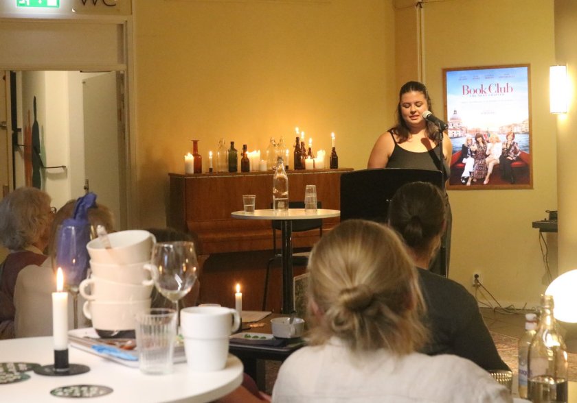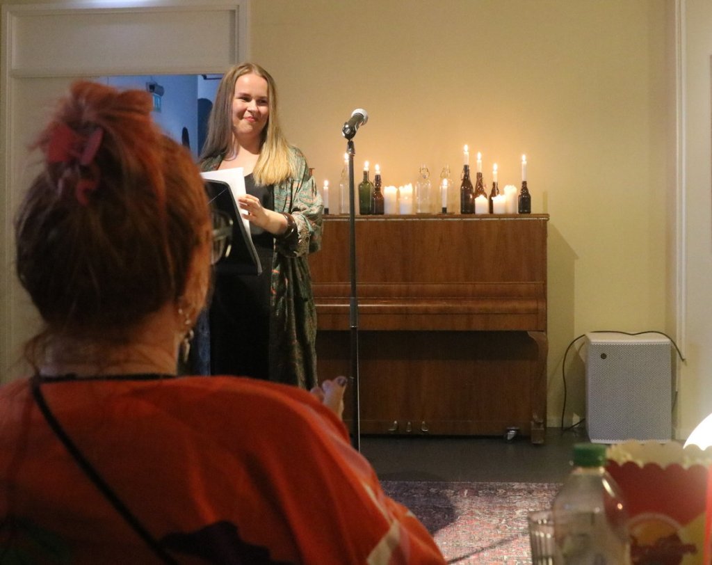 Kvällen leddes av Olivia Bergdahl som började med att gå igenom reglerna för öppna scenen. De var inte många, men viktiga. Den valfria diktpresentationen fick vara max 5 minuter. Om någon drog över tiden skulle Olivia avbryta genom att spela Europes The Final Countdown. Så fort uppläsaren hörde dess omisskännliga intro var det slut. Men det var disciplinerade estradörer den här kvällen, så vi slapp lyckligtvis höra Europes dänga.